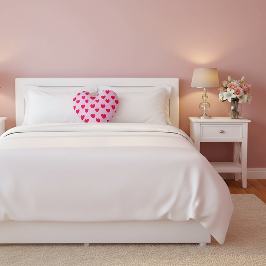 Sweet Love Hearts Pillows & Reversible Comforter Three Piece Bedding Set (White x Pink)