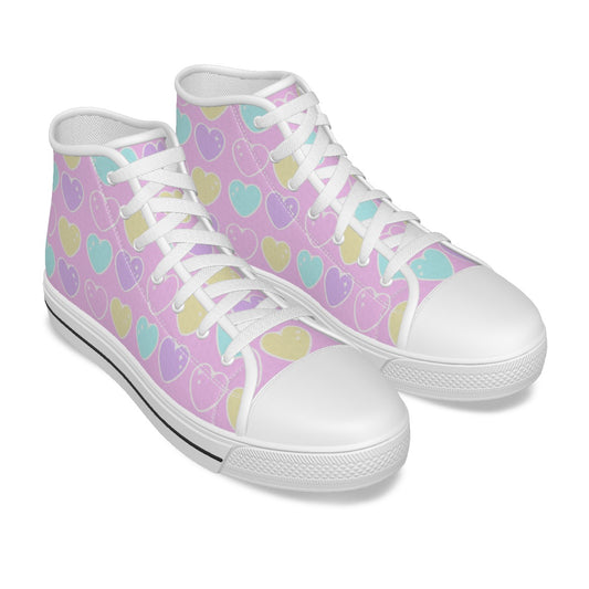 Sweet Love Hearts Women's High Top Cutie Canvas Shoes (Pink)