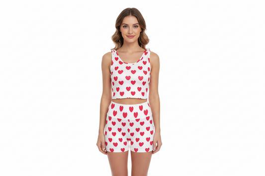 Sweet Love Hearts Women's Crop Top & Yoga Shorts Set (Red x White)