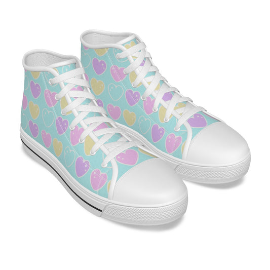 Sweet Love Hearts Women's High Top Cutie Canvas Shoes (Blue)
