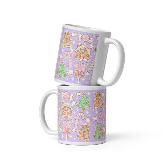 Kawaii Christmas White Glossy Mug (Sugar Plum)