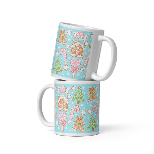 Kawaii Christmas White Glossy Mug (Candy Mint Delight)