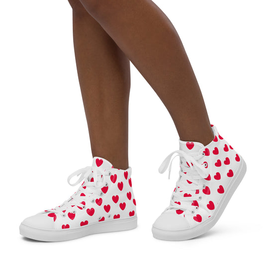 Sweet Love Hearts Women’s High Top Canvas Shoes (Red x White)
