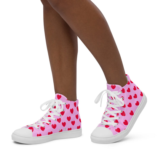 Sweet Love Hearts Women’s High Top Canvas Shoes (Pink x White)