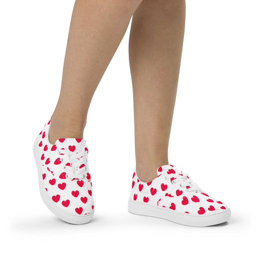 Sweet Love Hearts Women’s Classic Low Top Lace-Up Canvas Shoes (Red x White)