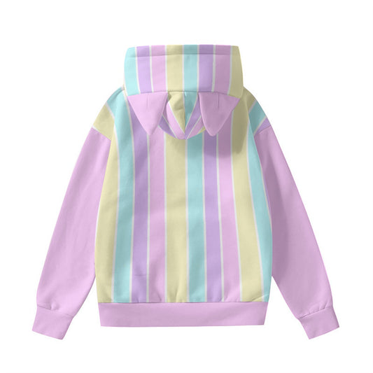 Pastel Stripes Purple Unisex Hoodie With Cat Ears