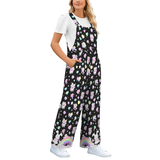 Rainbow Sweets Adjustable Strap Wide Leg Jumpsuit Overalls With Pockets (Black)