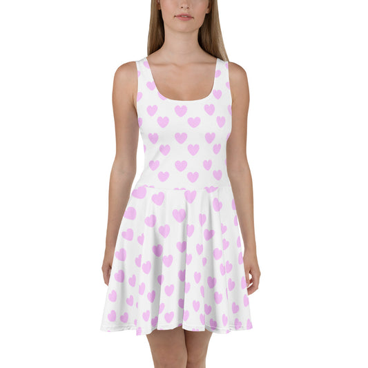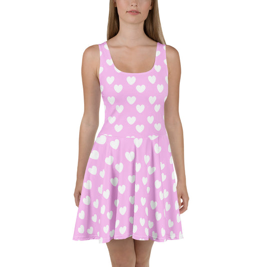 Sweet Love Hearts Skater Dress (Pink x White)