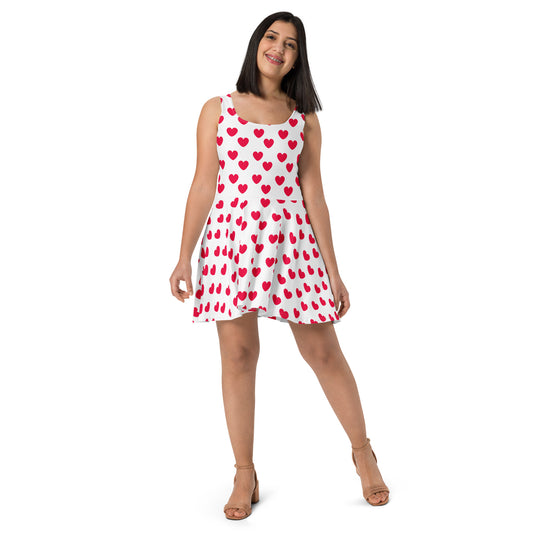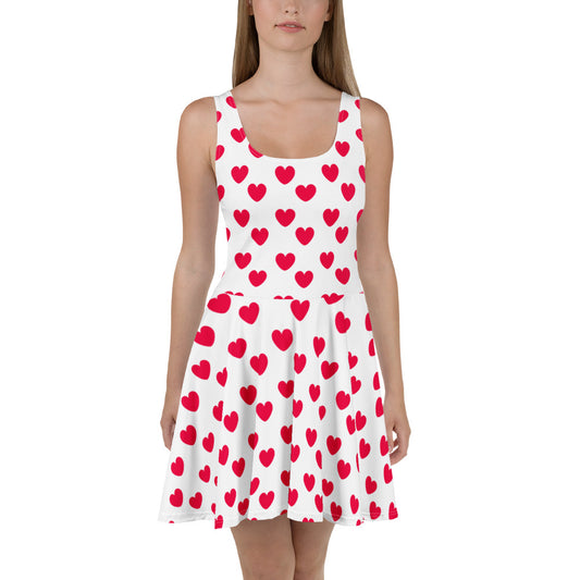 Sweet Love Hearts Skater Dress (Red x White)