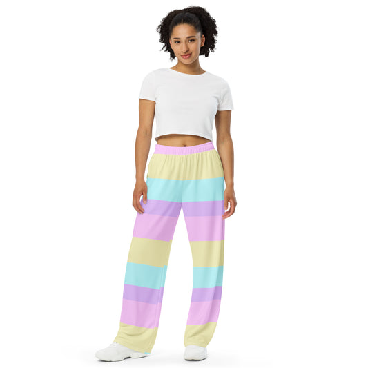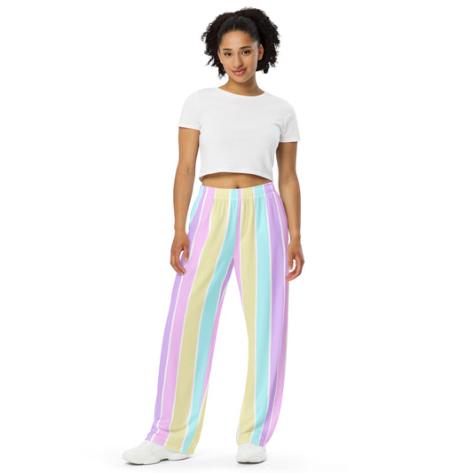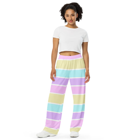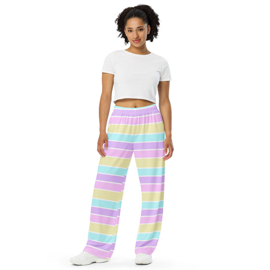 Pastel Stripes Unisex Wide Leg Pants (Color Block)