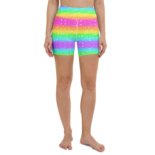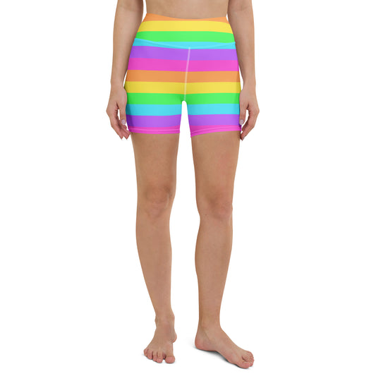 Rainbow Wonderland Yoga Shorts (Color Block Stripes)