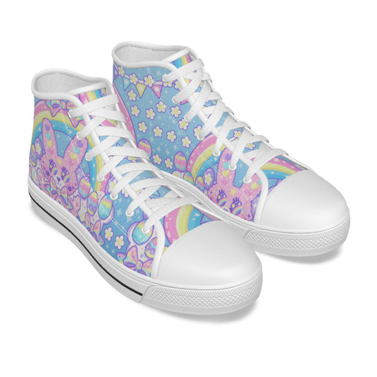Magical Rainbow Easter Bunny Men's High Top Cutie Canvas Shoes