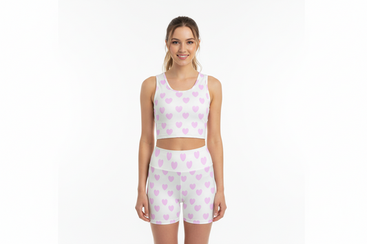 Sweet Love Hearts Women's Crop Top & Yoga Shorts Set (White x Pink)