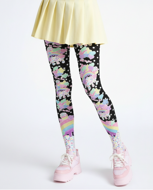 Rainbow Sweets Stretchy Tights (Cute Polka Dots Black)