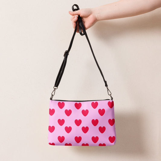 Sweet Love Hearts Utility Crossbody Sling Bag (Red x Pink)