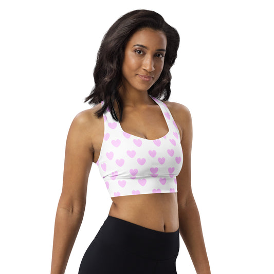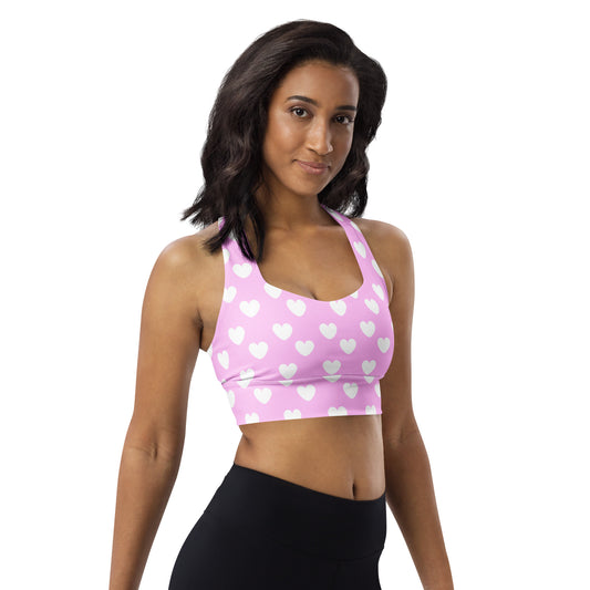 Sweet Love Hearts Longline Sports Bra (Pink x White)