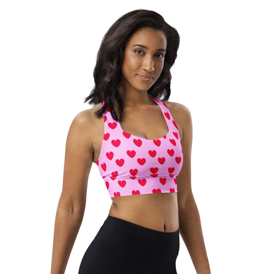 Sweet Love Hearts Longline Sports Bra (Red x Pink)