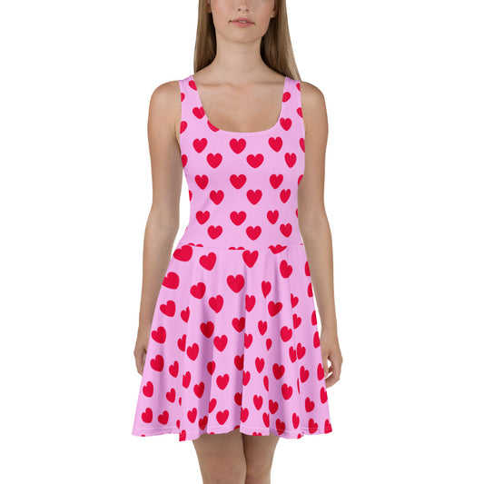 Sweet Love Hearts Skater Dress (Red x Pink)