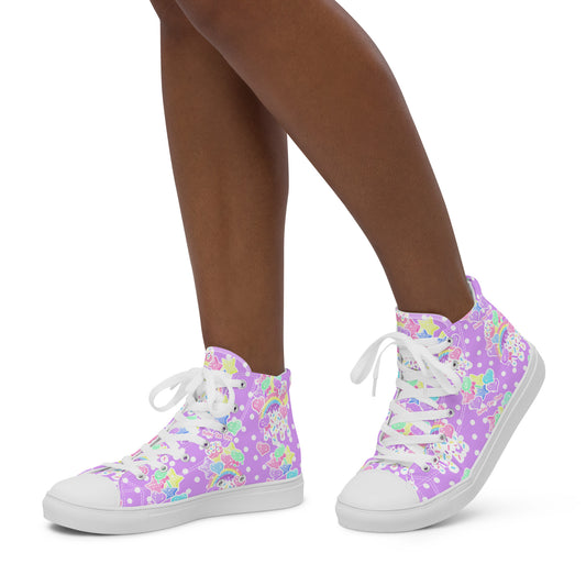 Rainbow Sweets Women’s High Top Canvas Shoes (Cute Polka Dots Purple)