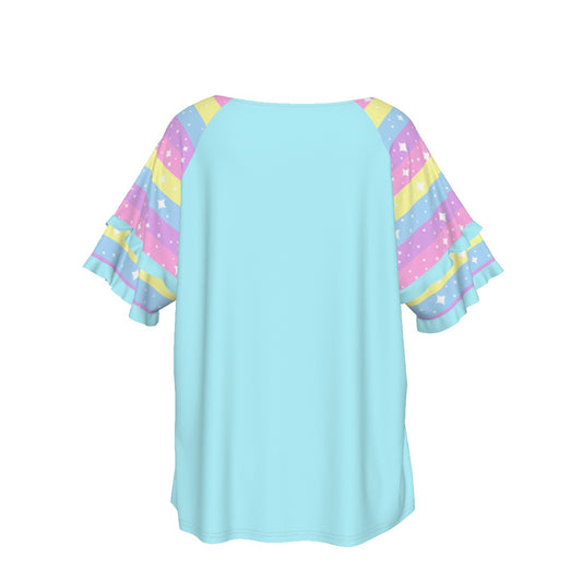 Wishing Bunny Blue Round Neck Raglan Sleeve Ruffle Frill T-Shirt