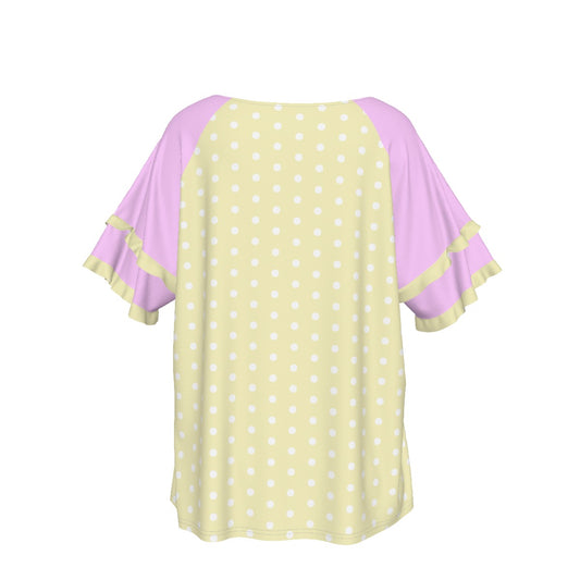 Sweet Love Hearts Yellow Round Neck Raglan Sleeve Ruffle Frill T-Shirt (Polka Dots)