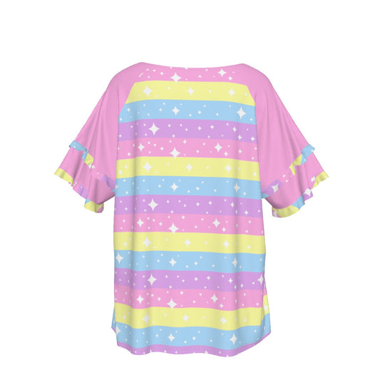 Kawaii Sparkle Cake Round Neck Raglan Sleeve Ruffle Frill T-Shirt
