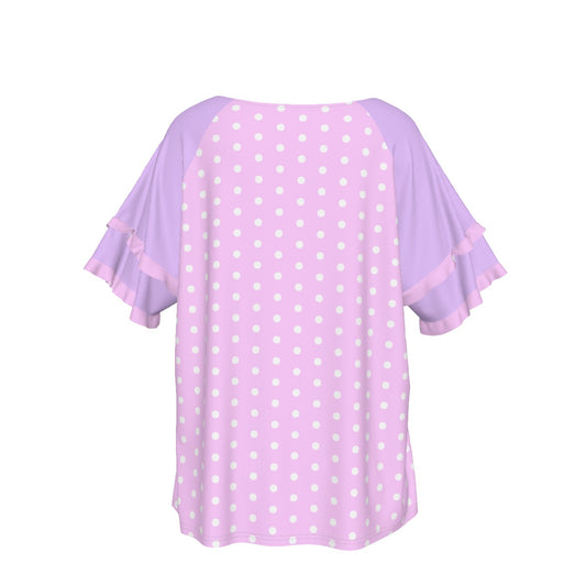 Sweet Love Hearts Purple Round Neck Raglan Sleeve Ruffle Frill T-Shirt (Polka Dots)