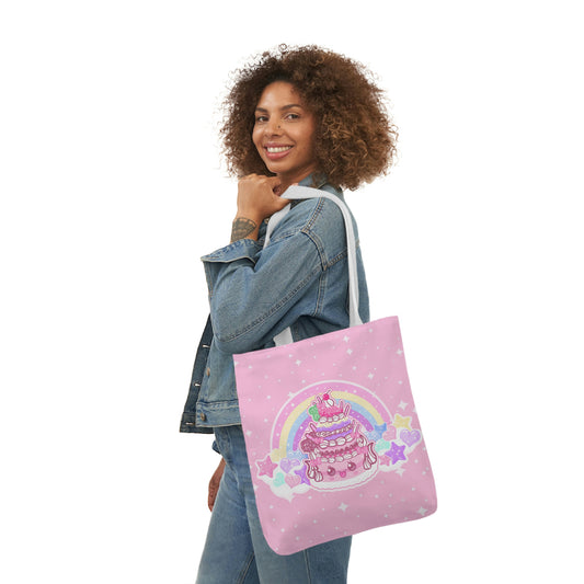Kawaii Sparkle Cake Polyester Canvas Tote Bag