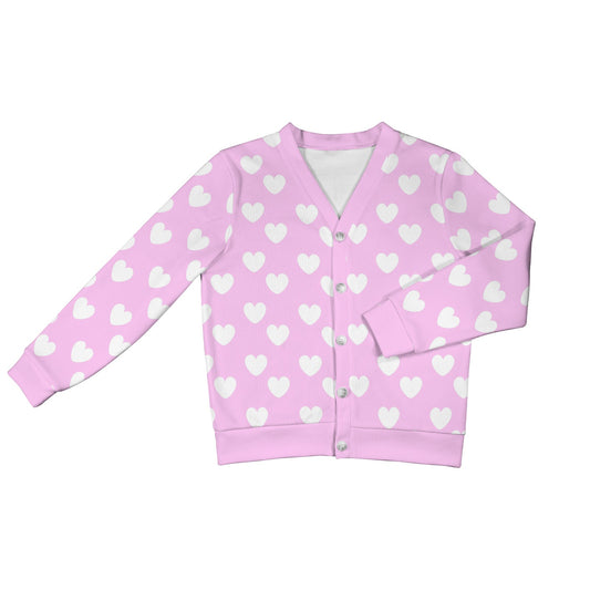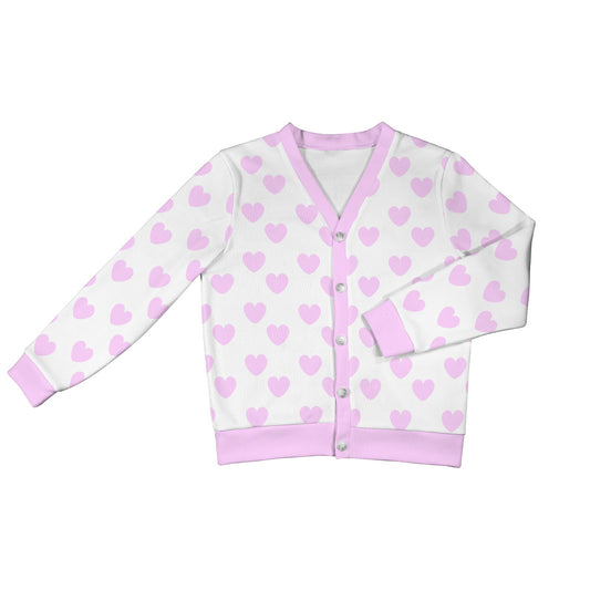 Sweet Love Hearts Ribbed Button Up Cardigan (Pink x White)