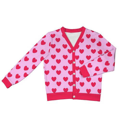 Sweet Love Hearts Ribbed Button Up Cardigan (Red x Pink)