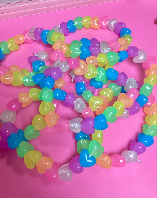 Rainbow Hearts Stretchable Elastic Bracelet (Glows In The Dark)
