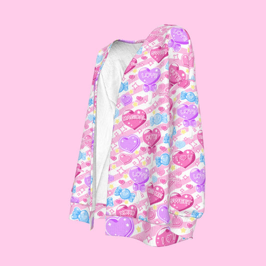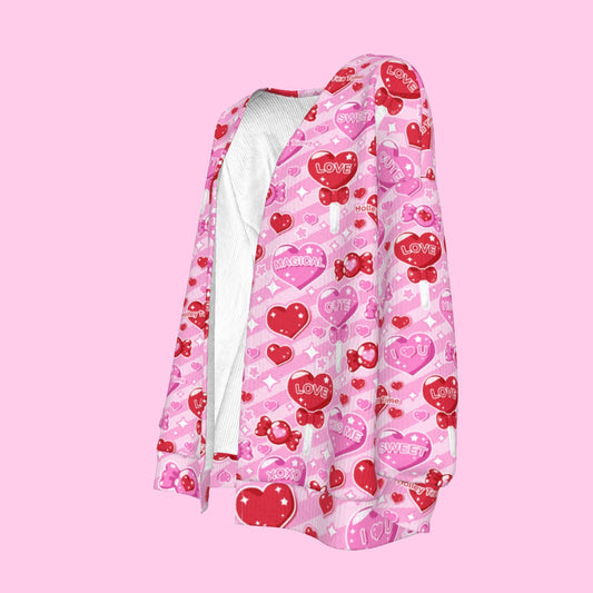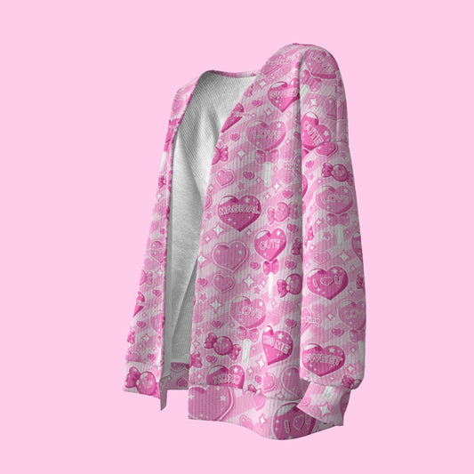 Candy Love Hearts (Pink Cutie) Women's Open Front Cardigan