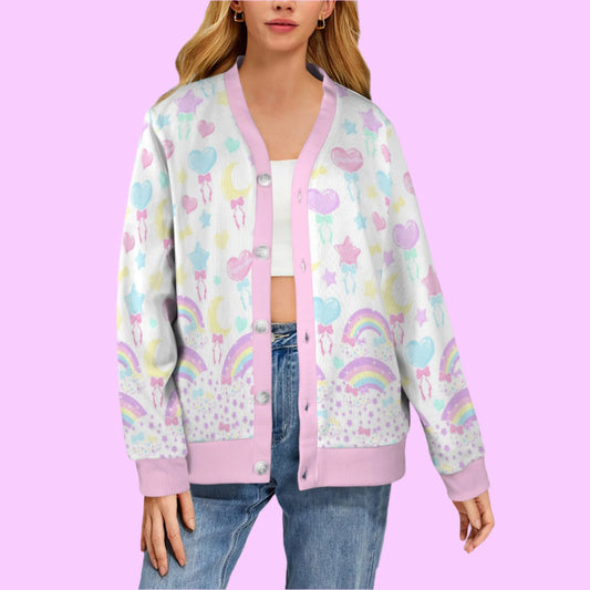 Pastel Party Women's Ribbed Button Up Cardigan (White)