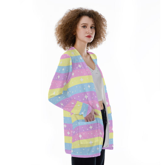 Rainbow Ribbon Open Front Lightweight Cardigan With Pockets