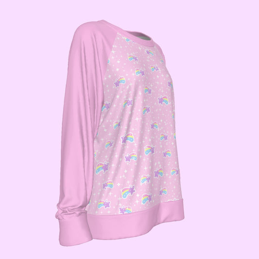 Bubblegum Bunny Shooting Stars Women's Round Neck Raglan Sleeve Casual Sweatshirt