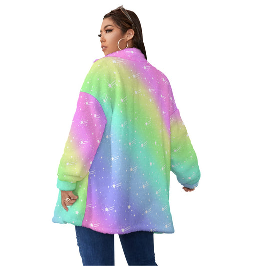 Wishful Rainbow Women's Oversized Fuzzy Fleece Coat With Zipper