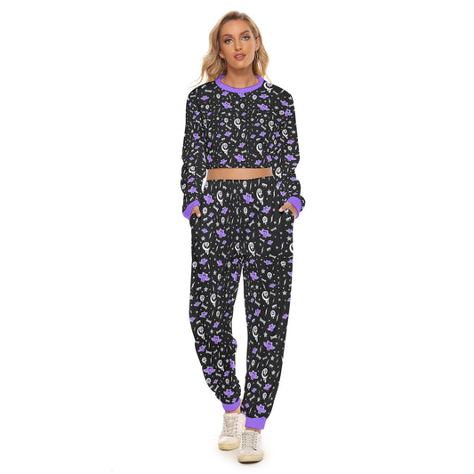 Milky Bat Night Women's Crop Sweatshirt & Sweatpants Set (Black)