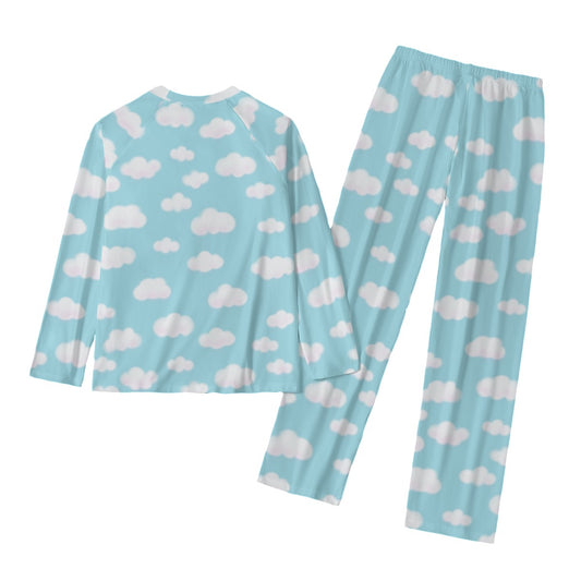 Dreamy Clouds Women's Raglan Long Sleeve Top With Wide Ankle Pants Pajamas Set (Sky Blue)
