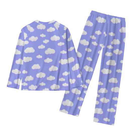 Dreamy Clouds Women's Raglan Long Sleeve Top With Wide Ankle Pants Pajamas Set (Periwinkle)