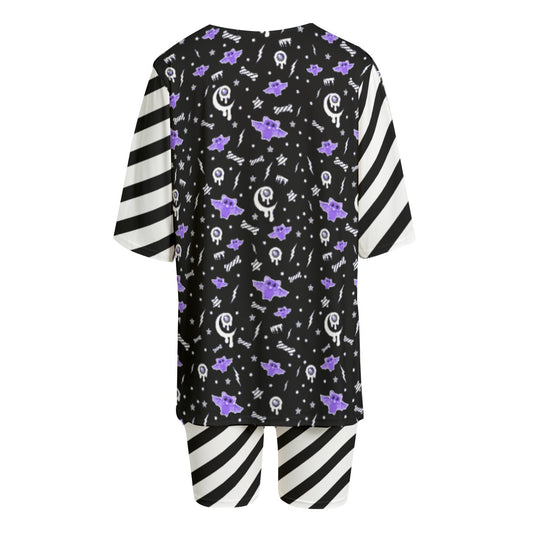 Milky Bat Night Women's T-shirt & Shorts Set (Black)