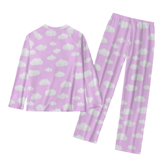 Dreamy Clouds Women's Raglan Long Sleeve Top With Wide Ankle Pants Pajamas Set (Lilac)
