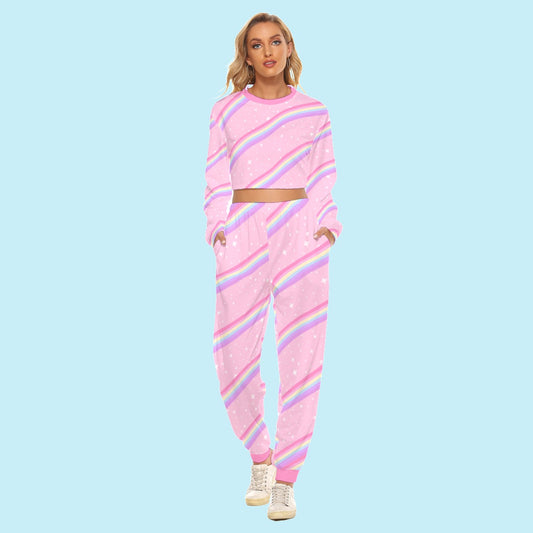 Kawaii Sparkle Cake Rainbow Beam Women's Crop Sweatshirt & Sweatpants Set