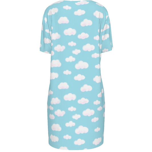 Dreamy Clouds Women's Cotton T-shirt Dress (Sky Blue)