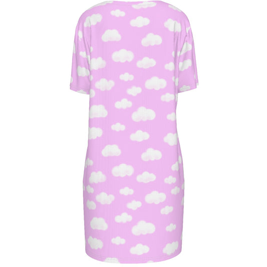 Dreamy Clouds Women's Cotton T-shirt Dress (Taffy Pink)