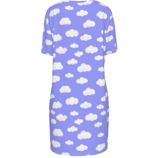 Dreamy Clouds Women's Cotton T-shirt Dress (Periwinkle)
