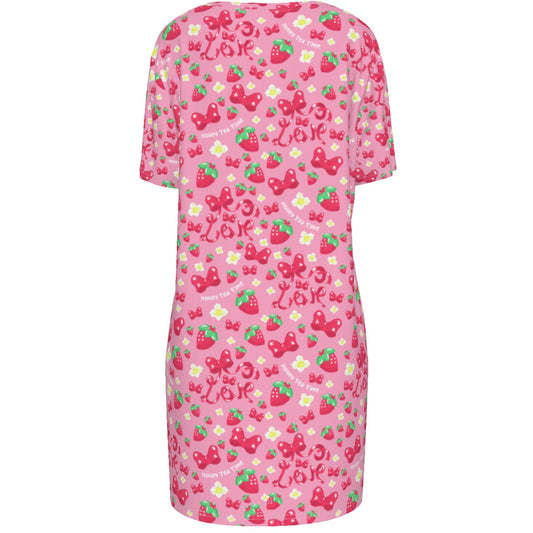 Strawberry Ribbon Women's Cotton T-shirt Dress