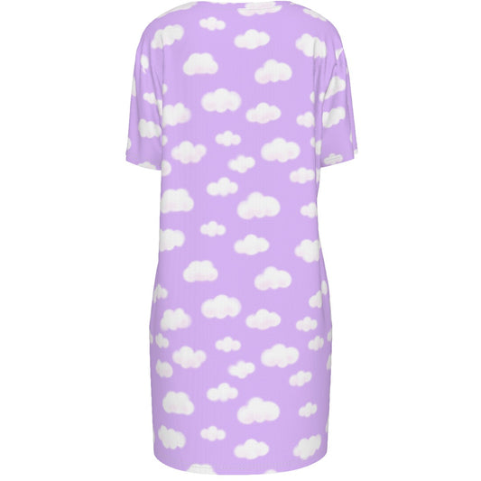 Dreamy Clouds Women's Cotton T-shirt Dress (Lilac)