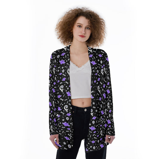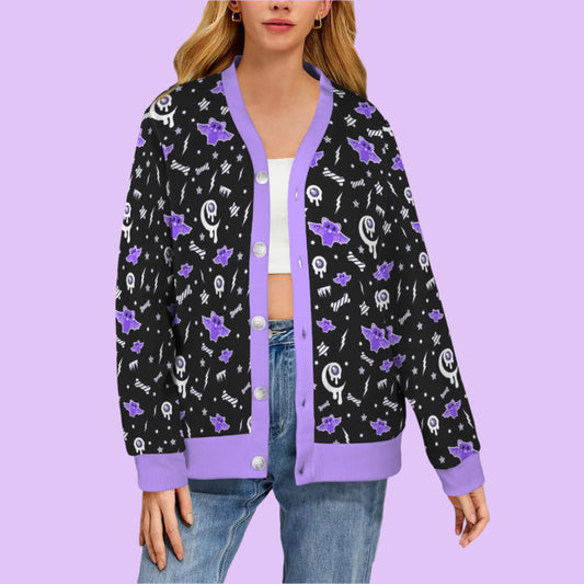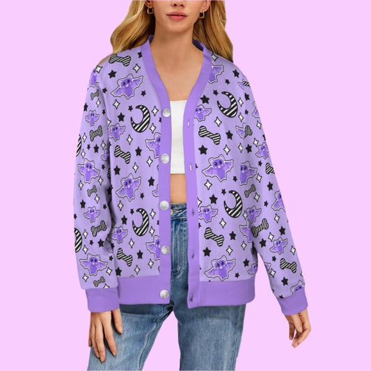 Magical Kawaii Spooky Bats Women's Ribbed Button Up Cardigan