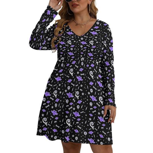 Milky Bat Night Women's V-Neck Long Sleeve Dress (Plus Size)