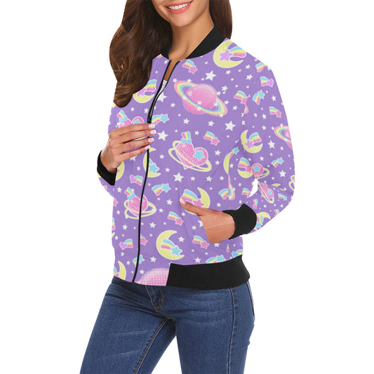 Saturn's Wish Purple Women's Bomber Jacket